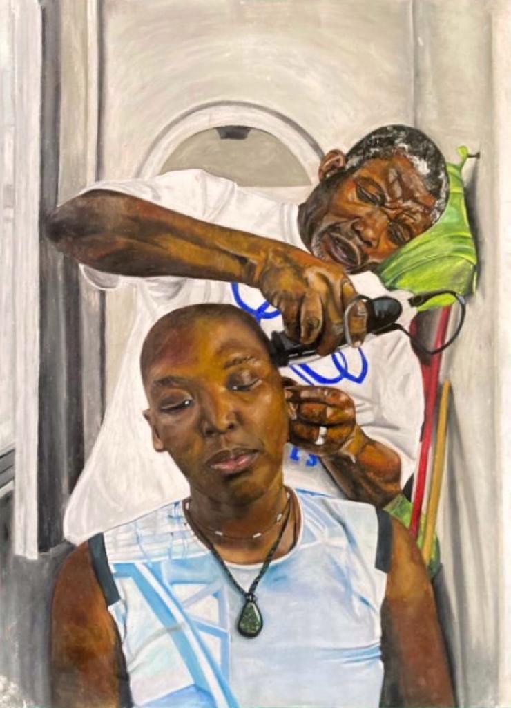 A arrepiante naturalidade deste seu quadro expressa bem a força da sua técnica, a magia e a paixão da sua arte. Quem a conhece vê-a ali espelhada e quem conhece o seu pai (o antigo bailarino angolano) percebe que nada podia ser mais igual, na atualidade, à expressão de esse ex-artista retirado. Com este fantástico “Corte de Cabelo” o pai, a pedido da filha, participa na formação da sua expressão corporal e apoia-a nos desígnios aos quais se entrega e pelos quais combate: Mulher, Negra, Feminista.