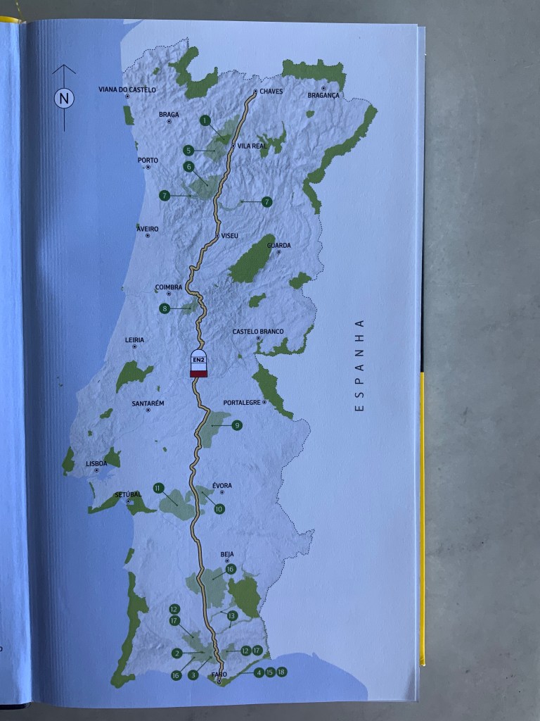 Um amigo meu (só podia ser um amigo) ofereceu-me recentemente um livro maravilhoso: o Guia da Estrada Nacional 2 – Portugal de Norte a Sul pela mítica. Ele conhece o meu gosto por ver coisas diferentes ou novas e, por outro lado, desconfia do meu entusiasmo para me atrever a percorrer os quase 740 quilómetros dessa encantadora estrada que liga Chaves a Faro. Acertou nas suas desconfianças. Já me tinha passado pela cabeça meter-me nessa aventura mas, por esta ou aquela razão, a coisa foi ficando adiada. Não tinha havido até agora um impulso maior que me despertasse do “ronronar” da vida e me levasse a realizar esta encantadora aventura.