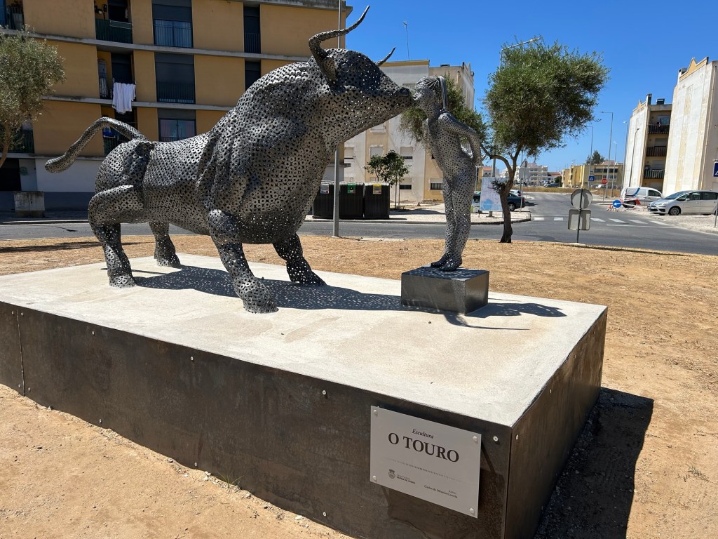 Não vou hoje voltar ao tema. Limito-me a dar-vos a conhecer uma escultura muito bela que se encontra numa rotundo em Vila Real de Santo António, no local onde, há muitos anos existiu uma praça de touros. Chegou a ser a única a existir no Algarve, mas os tempos foram evoluindo e as novas tendências não impediram a sua demolição.